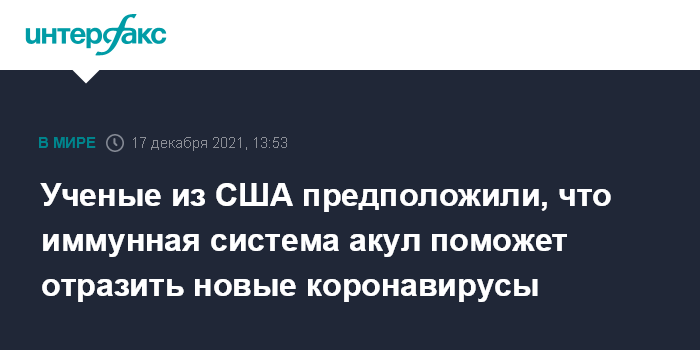 "VNAR акулы смогли нейтрализовать WIV1-CoV, коронавирус, который способен заражать клетки человека, но в настоящее время циркулирует только у летучих мышей, у которых, вероятно, возник SARS-CoV-2, вызывающий COVID-19", - отмечается в сообщении.