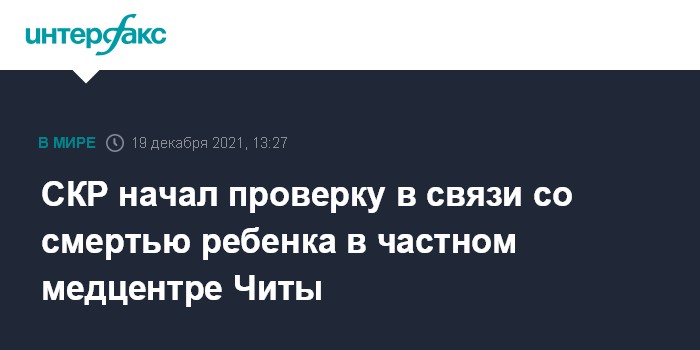 СКР начал проверку в связи со смертью ребенка в частном медцентре Читы