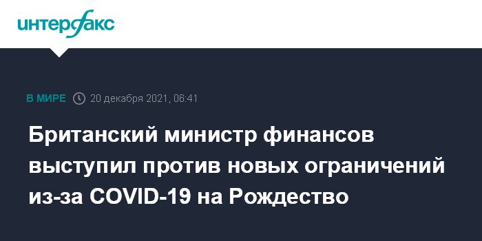 В то же время, в минувшее воскресенье вероятность дальнейших ограничений по COVID-19 перед Рождеством не исключил министр здравоохранения Великобритании Саджид Джавид , который отметил что распространение штамма "омикрон" происходит очень быстро.
