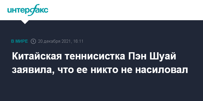 Китайская теннисистка Пэн Шуай заявила, что ее никто не насиловал