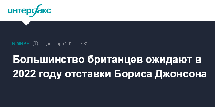 Так, согласно опросу, 62% британцев верят, что в течение 2022 года Борис Джонсон перестанет быть премьер-министром и всего 25% считают такой исход маловероятным. При этом 58% подданных, голосовавших за Консервативную парию в 2019 году, верят в уход Джонсона с поста. Падение популярности Джонсона связано с его методами борьбы с пандемией коронавируса, а также с недавно разразившимся скандалом с рождественской вечеринкой на Даунинг-стрит, предположительно прошедшей в 2020 году во время жесткого локдауна в городе.