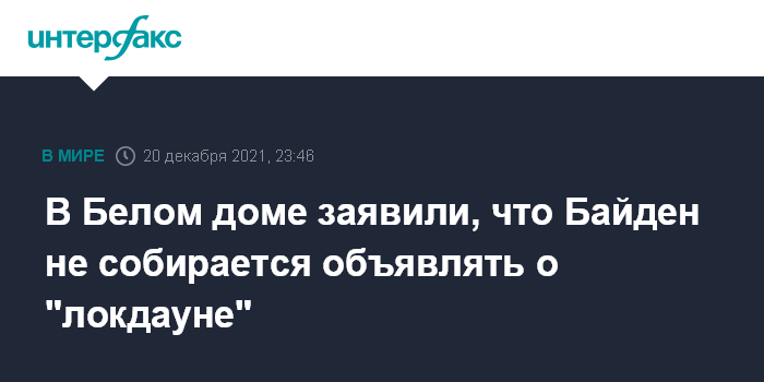 В Белом доме заявили, что Байден не собирается объявлять о "локдауне"