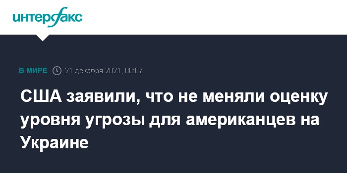 США заявили, что не меняли оценку уровня угрозы для американцев на Украине