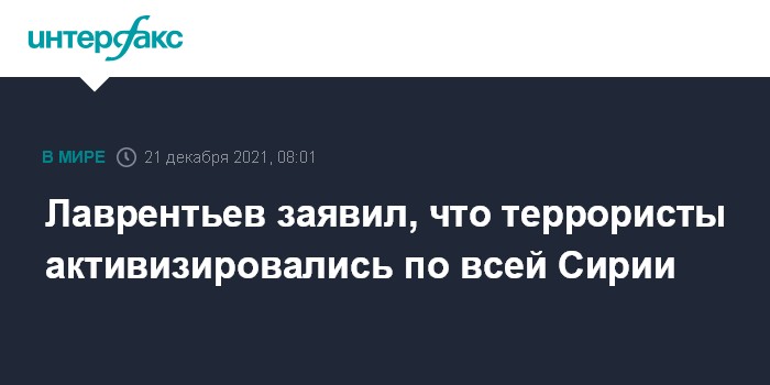 "У нас вызывает озабоченность активизация террористических группировок, активизация ИГИЛ (террористическая организация, запрещена в РФ - ИФ), провокационные действия, которые предпринимаются в отношении представителей силовых структур Сирийской национальной армии", - сообщил Лаврентьев журналистам во вторник.