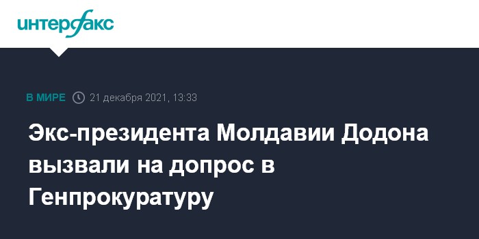 Москва. 21 декабря. INTERFAX.RU - Экс-президента Молдавии, одного из лидеров партии социалистов Игоря Додона вызвали в Генпрокуратуру для допроса для признания подозреваемым в уголовном деле о злоупотреблениях. Первым об этом сообщило издание deschide.md со ссылкой на источники в прокуратуре.