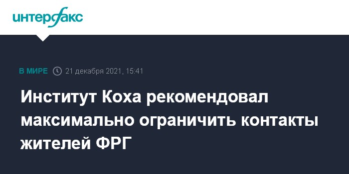 Москва. 21 декабря. INTERFAX.RU - Институт Роберта Коха, который отслеживает ситуацию с COVID-19 в Германии, рекомендовал властям ввести максимальные ограничения контактов из-за распространения штамма коронавируса "омикрон", сообщает Welt.
