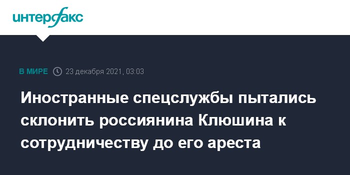 Иностранные спецслужбы пытались склонить россиянина Клюшина к сотрудничеству до его ареста