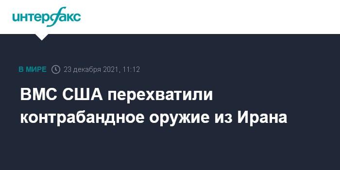 Москва. 23 декабря. INTERFAX.RU - ВМС США взяли под контроль судно с йеменским экипажем, которое перевозило из Ирана контрабандное оружие, вероятно, в Йемен, сообщил телеканал ABC.