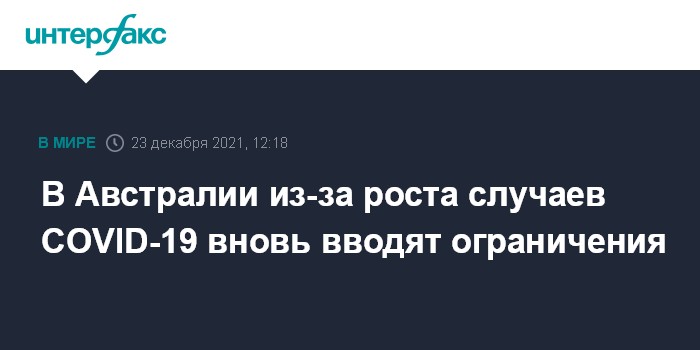 Москва. 23 декабря. INTERFAX.RU - В Австралии вновь вступают в действие ограничения из-за рекордных показателей заболеваемости коронавирусом, вызванных распространением штамма COVID-19 "омикрон", передают западные СМИ со ссылкой на австралийские власти.