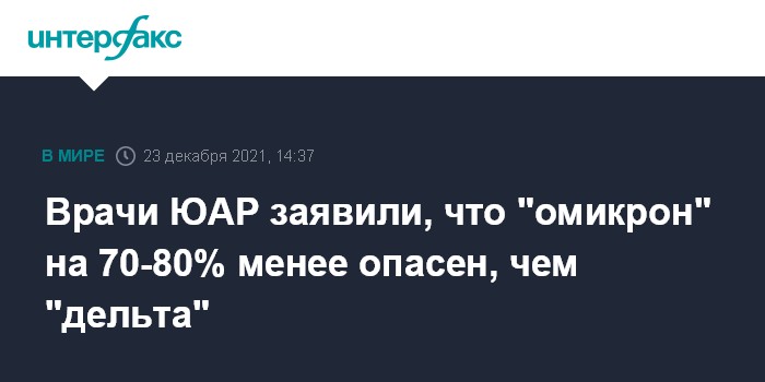 Врачи ЮАР заявили, что "омикрон" на 70-80% менее опасен, чем "дельта"