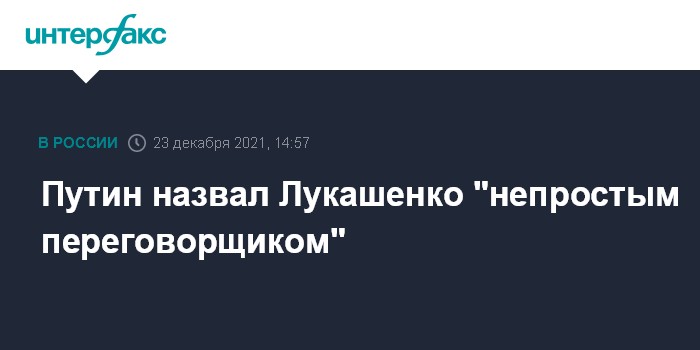 Москва. 23 декабря. INTERFAX.RU - Президент Владимир Путин на большой пресс-конференции назвал белорусского лидера Александра Лукашенко и его команду "непростыми переговорщиками", но добавил, что в целом стороны достигли понимания о том, как дальше двигаться к интеграции двух государств.