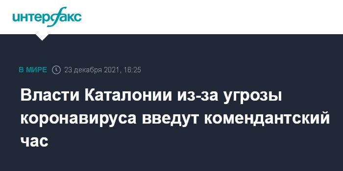 Москва. 23 декабря. INTERFAX.RU - В испанском автономном сообществе Каталонии суд поддержал предложения ввести комендантский час и ограничения для жителей собираться компаниями, состоящими не более чем из 10 человек, в рамках борьбы с распространением коронавируса, сообщает в четверг испанское агентство ЭФЭ.
