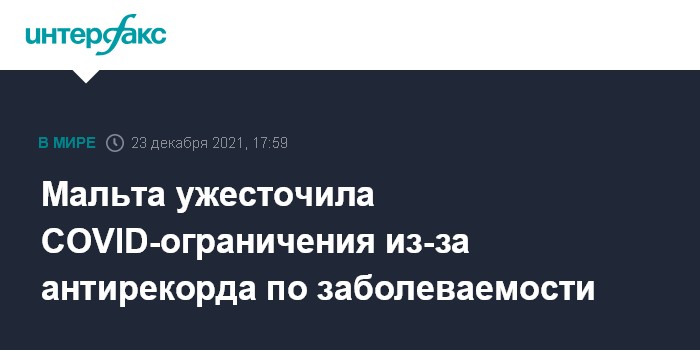 Москва. 23 декабря. INTERFAX.RU - Минздрав Мальты объявил о введении ограничительных мер для борьбы с распространением коронавируса на фоне антирекорда по новым случаям COVID-19, сообщает издание Times of Malta.