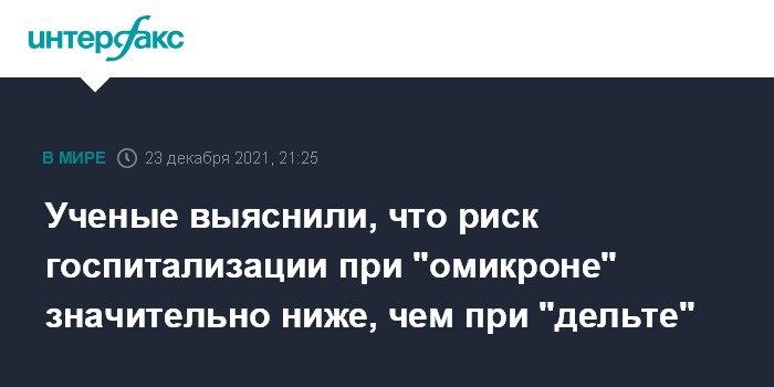 Согласно данным, риск того, что заразившийся "омикроном" попадет в больницу, ниже на 50-70%, чем при заболевании "дельтой".