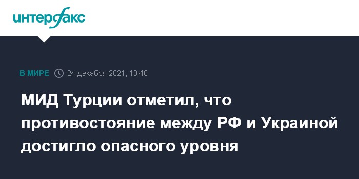 Москва. 24 декабря. INTERFAX.RU - Противостояние между РФ и НАТО, а также Украиной стало приобретать опасные формы, заявил глава МИД Турции Мевлют Чавушоглу.