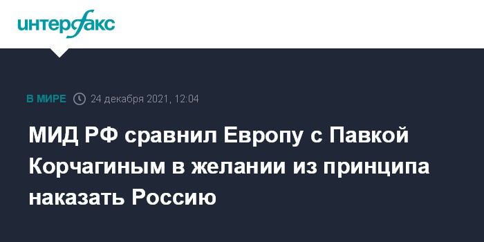 МИД РФ сравнил Европу с Павкой Корчагиным в желании из принципа наказать Россию