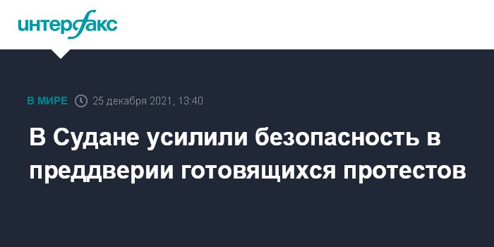 Москва. 25 декабря. INTERFAX.RU - Власти Судана усилили меры безопасности в столице Хартуме в преддверии ожидающихся в субботу протестов против военного переворота, произошедшего в октябре, сообщает Associated Press.
