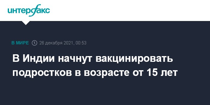 Москва. 26 декабря. INTERFAX.RU - Премьер Индии Нарендра Моди заявил о начале вакцинации от COVID-19 подростков в возрасте от 15 лет с 3 января. Об этом пишет Axios.