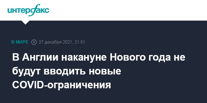 В Англии накануне Нового года не будут вводить новые COVID-ограничения