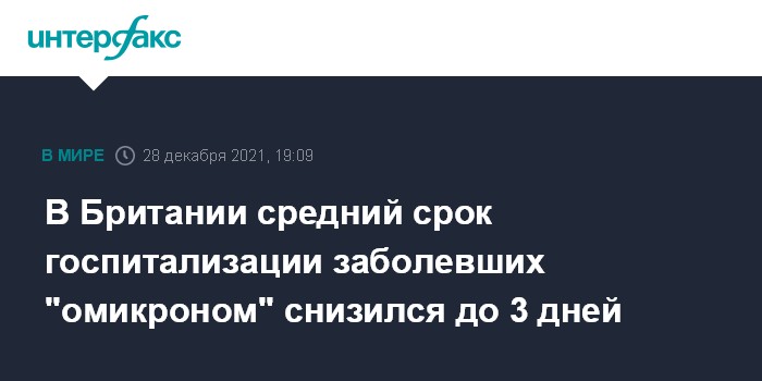 По его словам, несмотря на то, что за последние недели из-за распространения "омикрона" увеличилось количество госпитализаций, заболевание этим штаммом "представляется менее серьезным, и многие люди проводят сравнительно небольшое время в больницах". Белл подчеркнул, что средняя продолжительность госпитализации снизилась до трех дней.