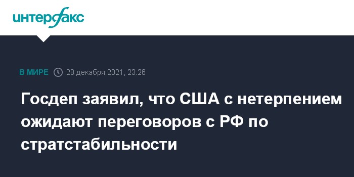 Госдеп заявил, что США с нетерпением ожидают переговоров с РФ по стратстабильности