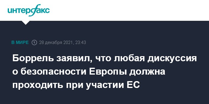 Боррель заявил, что любая дискуссия о безопасности Европы должна проходить при участии ЕС