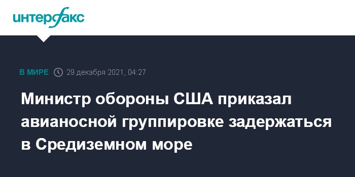 Министр обороны США приказал авианосной группировке задержаться в Средиземном море