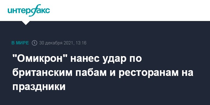 Москва. 30 декабря. INTERFAX.RU - В Великобритании з-за новых ограничений, введенных перед Рождеством и Новым годом в связи с появлением штамма коронавируса "омикрон", пабы и рестораны в центре городов понесли потери, пишет Independent со ссылкой на данные британской торговой ассоциации в сфере гостеприимства.