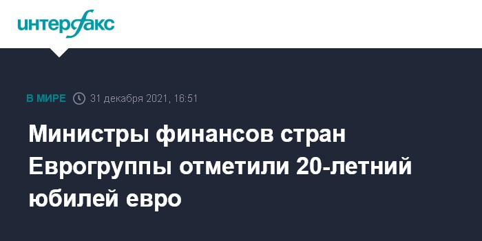 Москва. 31 декабря. INTERFAX.RU - Общая налогово-бюджетная и экономическая политика зоны евро должна соответствовать целям в изменившейся мировой среде и реагировать на будущие вызовы, заявили министры финансов стран Еврогруппы в совместной статье, посвященной 20-летнему юбилею единой европейской валюты.