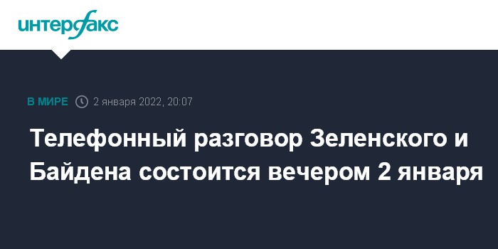 Москва. 2 января. INTERFAX.RU - Телефонный разговор между президентом Украины Владимиром Зеленским и президентом США Джозефом Байденом состоится вечером в воскресенье, сообщил пресс-секретарь главы государства Сергей Никифоров.