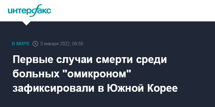 Москва. 3 января. INTERFAX.RU - В Южной Корее впервые зарегистрировали два летальных случая, связанных со штаммом COVID-19 "омикрон", сообщает "Ренхап".