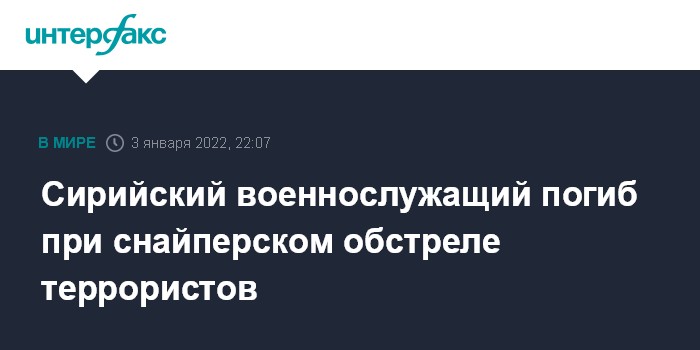 Сирийский военнослужащий погиб при снайперском обстреле террористов