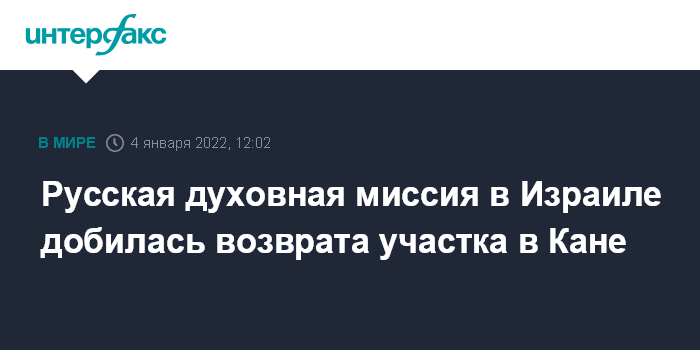 Москва. 4 января. INTERFAX.RU - Русская духовная миссия на Святой Земле и муниципалитет Кфар-Каны (Каны Галилейской) достигли принципиальной договоренности о возвращении миссии и дальнейшем совместном развитии русского участка, расположенного в центре города.