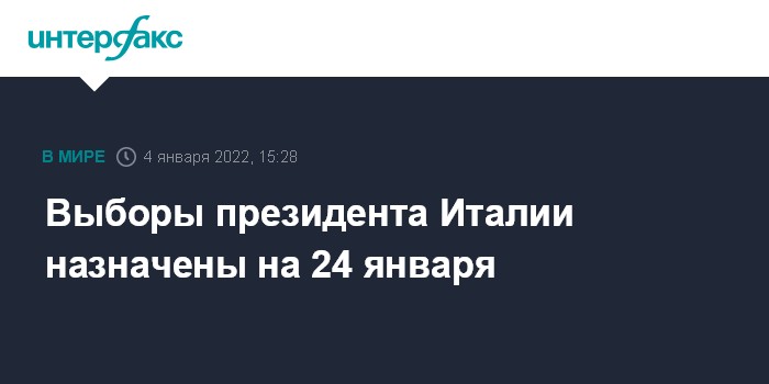 Москва. 4 января. INTERFAX.RU - Нижняя палата парламента Италии назначила заседание для голосования за нового президента страны на 24 января. Об этом сообщило агентство Associated Press.