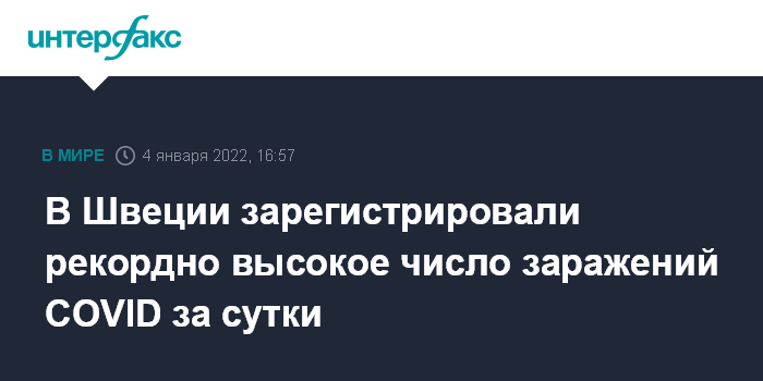 Москва. 4 января. INTERFAX.RU - В Швеции выявили рекордно высокое число зараженных коронавирусом COVID-19 за сутки - свыше 11,5 тыс. человек. Об этом сообщили европейские СМИ.