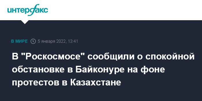 В "Роскосмосе" сообщили о спокойной обстановке в Байконуре на фоне протестов в Казахстане