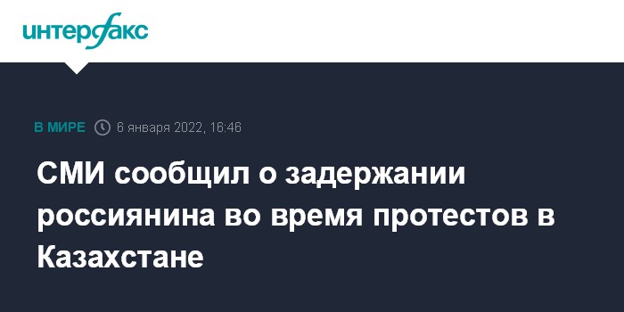 Москва. 6 января. INTERFAX.RU - Гражданина России задержали в ходе протестов в Костанайской области Казахстана, сообщает гостелеканал 24kz.