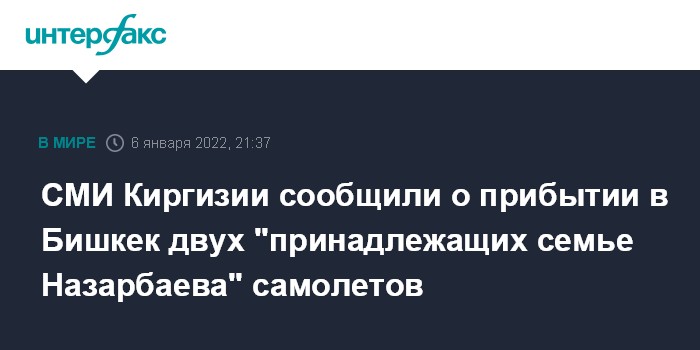 Москва. 6 января. INTERFAX.RU - В Бишкекский аэропорт Манас прибыло два частных самолета, принадлежащих по сообщениям киргизских СМИ семье первого президента Казахстана Нурсултана Назарбаева.