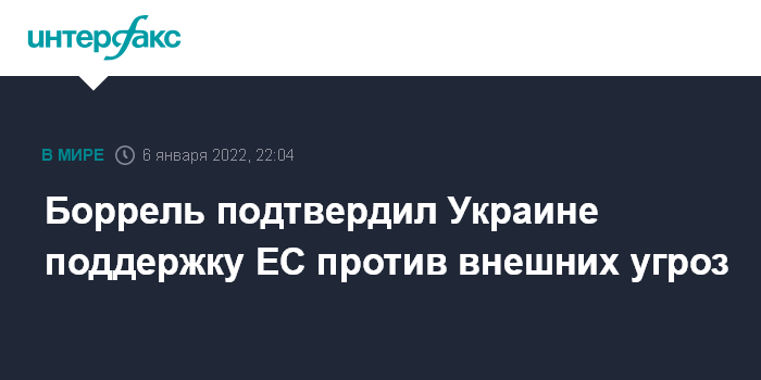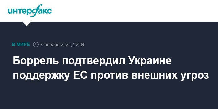 Москва. 6 января. INTERFAX.RU - Во время своей поездки на Украину 4-6 января глава дипломатии ЕС Жозеп Боррель подтвердил Киеву поддержку Евросоюзом против внешних угроз, говорится в коммюнике Европейской внешнеполитической службы (ЕВС).