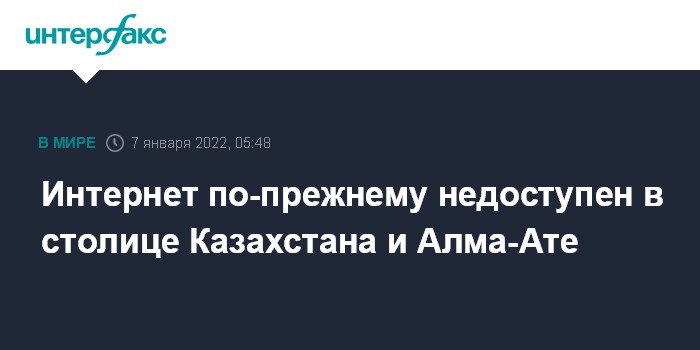 В четверг гостелеканал "Хабар 24" сообщил, что в Казахстане временно ограничен доступ в интернет в целях обеспечения безопасности. К вечеру четверга доступ в интернет был восстановлен, но через два часа интернет в Алма-Ате и столице Казахстана вновь пропал.