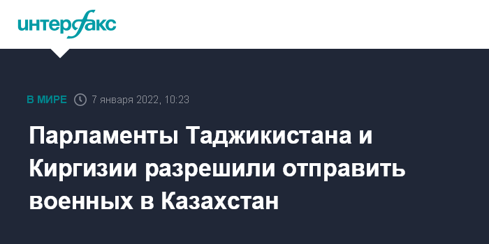 Парламенты Таджикистана и Киргизии разрешили отправить военных в Казахстан
