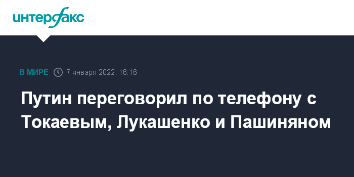 В пресс-службе белорусского президента, в свою очередь, рассказали, что Александр Лукашенко 7 января поговорил по телефону с Пашиняном, а затем с Путиным, они обсуждали в том числе события в Казахстане.