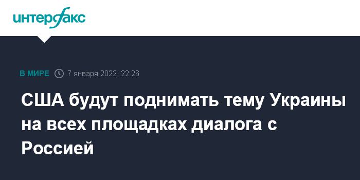 Москва. 7 января. INTERFAX.RU - Соединенные Штаты намерены говорить о действиях России против Украины на всех ближайших переговорах с участием Москвы, заявил глава Госдепартамента США Энтони Блинкен.