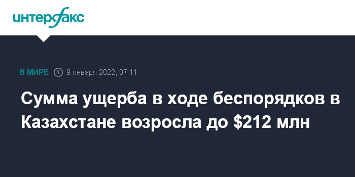 Сумма ущерба в ходе беспорядков в Казахстане возросла до $212 млн