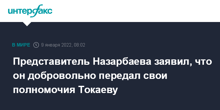 Представитель Назарбаева заявил, что он добровольно передал свои полномочия Токаеву