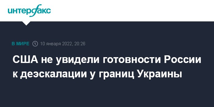 Москва. 10 января. INTERFAX.RU - Российская сторона не дала прямого ответа на вопрос, готова ли она к деэскалации ситуации на границе с Украиной, заявила первый замгоссекретаря США Уенди Шерман после переговоров в Женеве с замглавы МИД России Сергеем Рябковым.