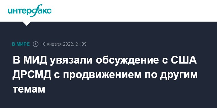 В МИД увязали обсуждение с США ДРСМД с продвижением по другим темам