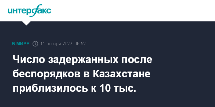 Москва. 11 января. INTERFAX.RU - Количество задержанных участников беспорядков в Казахстане достигло 9,9 тыс. человек, сообщило МВД республики во вторник.