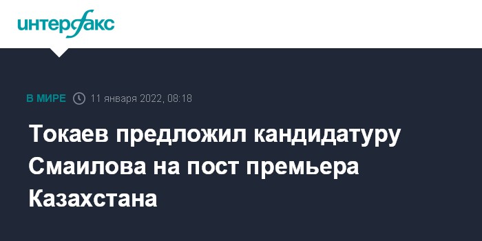 Москва. 11 января. INTERFAX.RU - Президент Казахстана Касым-Жомарт Токаев предложил кандидатуру временно исполняющего обязанности премьер-министра Алихана Смаилова на должность главы кабинета министров.