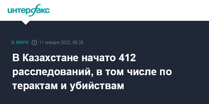 Москва. 11 января. INTERFAX.RU - В Казахстане со дня объявления антитеррористической операции начато 412 досудебных расследований, в том числе по актам терроризма и убийствам, сообщила пресс-служба главы государства.